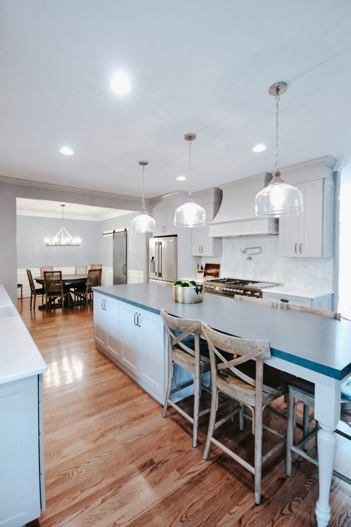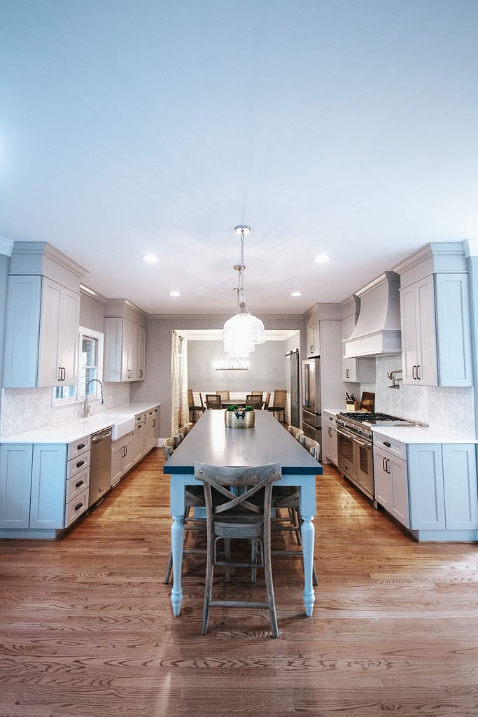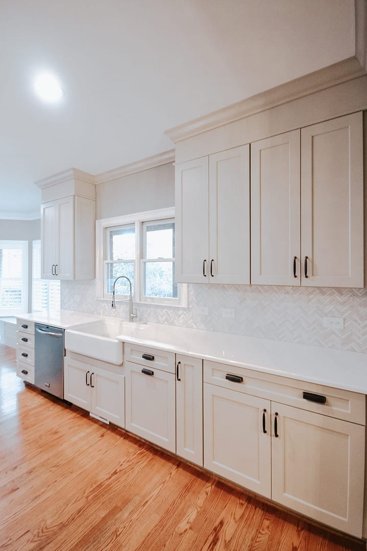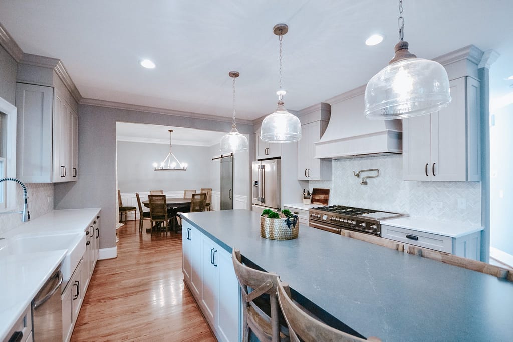 The bones of the kitchen improved, it was finally time for finishing touches. Glass pendants, marble backsplash and a farm sink give the space some style. The homeowners wanted a kitchen that was timeless and not too trendy, and their selections reflect that thanks to Ashley. “Our project would not have been possible without a designer. My wife and I went through all project selections with Ashley. She guided us through the many options we had to consider. She listened to our input on what we were looking for and did not settle until we were happy,” our clients praised.