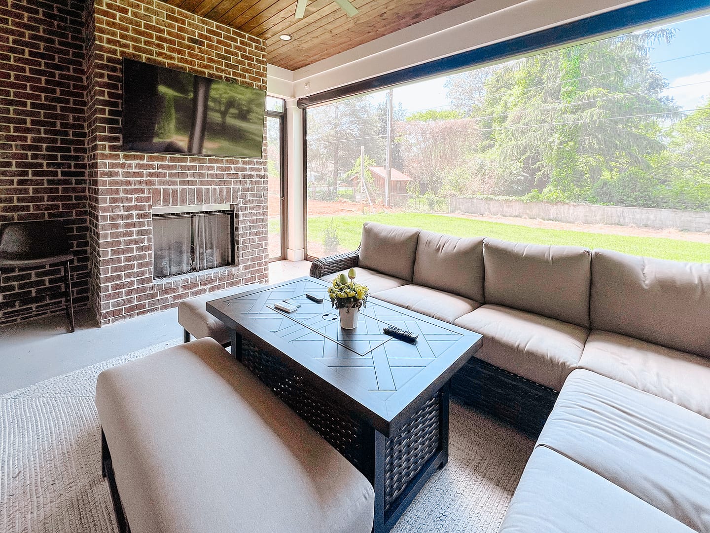 Just off the living room, moving outside the porch has become our clients favorite part of their new home. “Having moved from a downtown apartment, we are really enjoying the sliding glass backdoor that opens up to the screened-in porch & yard. We really look forward to the connected area of the back porch and living room in the Summer!” This area is the perfect indoor-outdoor transition space to entertain guests or unwind and relax while soaking up the recent spring weather.