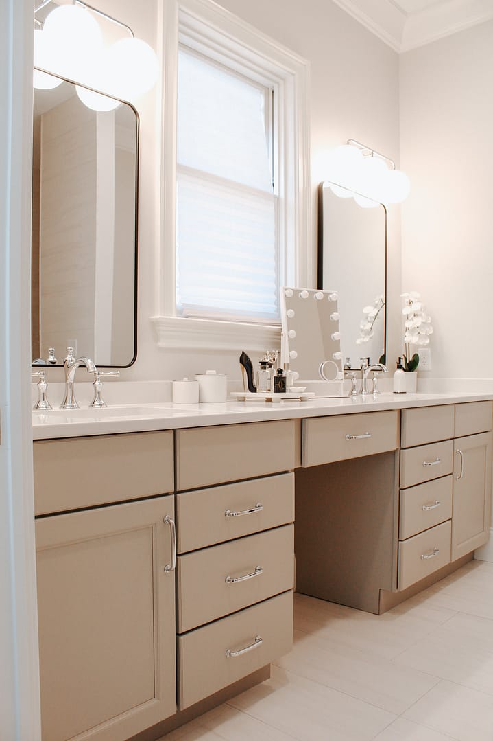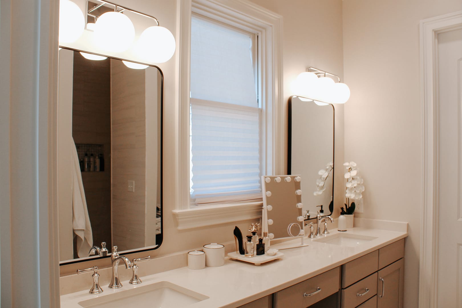 Creating an inviting space was a top priority for our clients, and this bathroom truly delivers. Soft, warm light fills the room, making it feel welcoming. The spacious double vanity offers ample storage with gorgeous finished cabinetry and polished hardware that adds a touch of sophistication. Attentive details bring everyday luxury to life. With its elegant lighting, clean lines, and tasteful finishes, this bathroom perfectly balances comfort, style, and functionality.