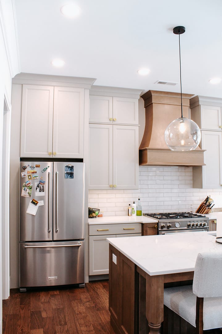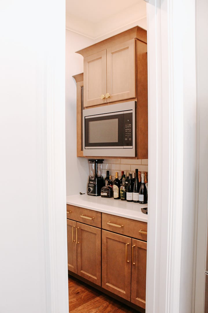 The kitchen truly serves as the heart of this home, filled with considerate design and stunning details at every turn. Warm wood accents bring depth and character to the space, while soft neutral cabinetry and clean finishes create a polished look. Just beyond the arched entryway, a tucked-away butler’s pantry offers even more function without sacrificing style. Every corner of this kitchen is a beautiful balance of beauty and everyday comfort.