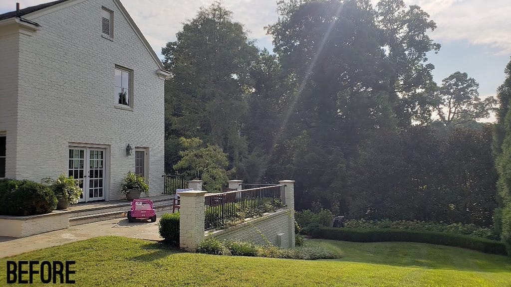 Hot summer days have us in the mood to talk all things outdoors–especially pretty spaces like this one! If you’ve been following McCamy for a while, you may remember seeing photos of this outdoor fireplace project. A few years ago, the owners of this 1920s Sequoyah home worked with McCamy for the first time to build an outdoor oasis for the cooler months. Now, it was time to create a space that the whole family can enjoy when the Knoxville sun is blazing!