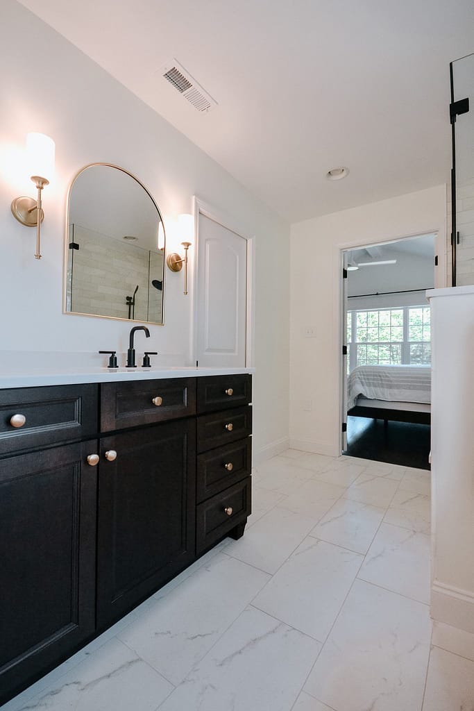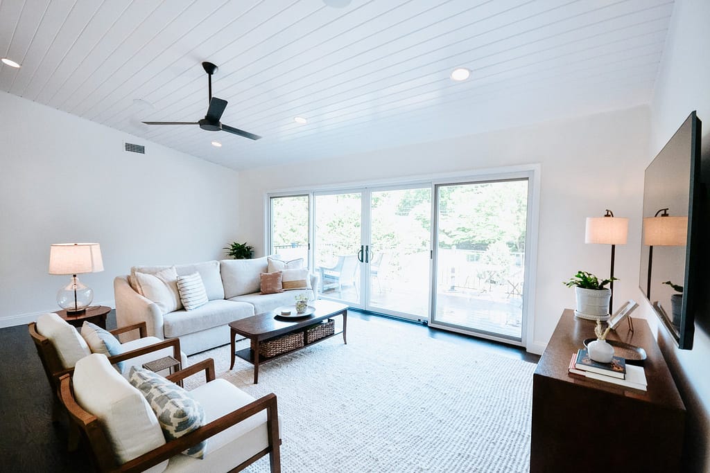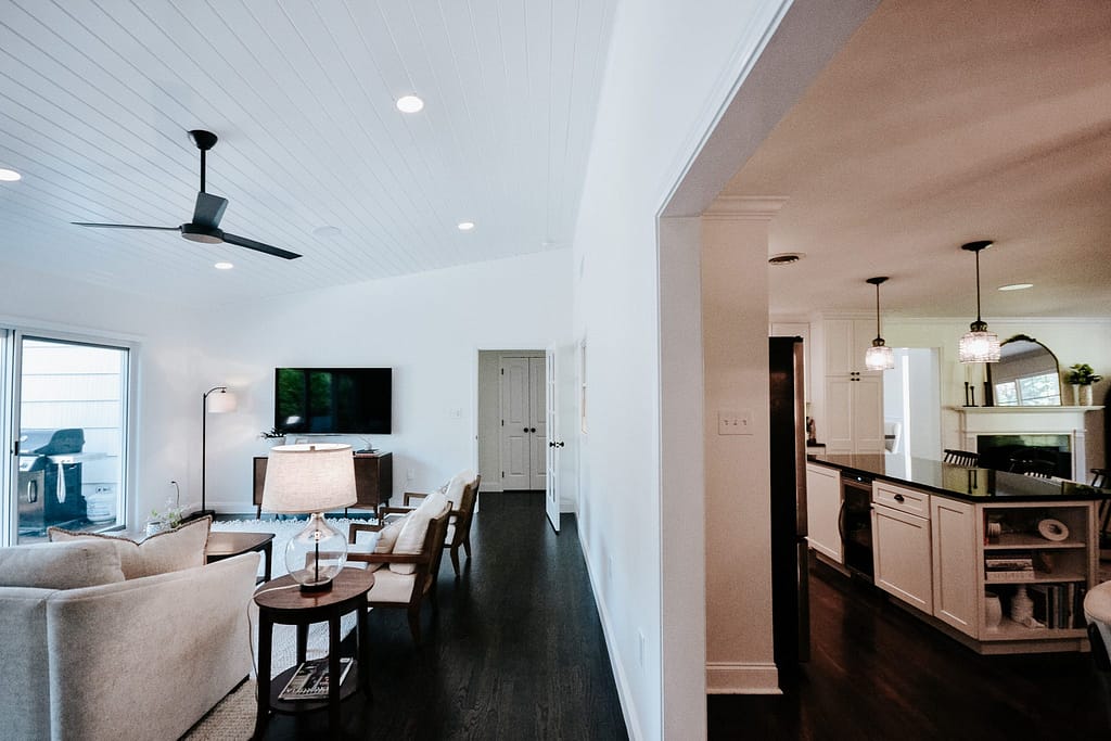 This home addition would include a dining room, primary suite, powder room, sunroom and outdoor living area, giving them almost 2000 square feet of additional living space. This almost doubled the size of their home, adding significant value and giving the whole family a little bit of breathing room!