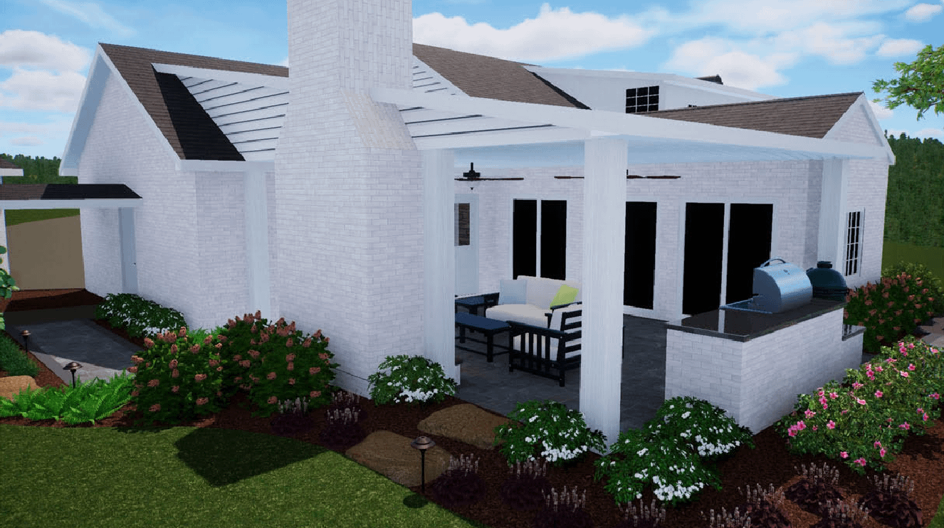 Next door, we’re undertaking a major renovation of a craftsman-style rancher. The home will see a significant extension, including a more functional kitchen and mudroom. Outside, we’re transforming the previously unused pool area into an inviting outdoor kitchen and covered porch, perfect for year-round gatherings with family and friends.