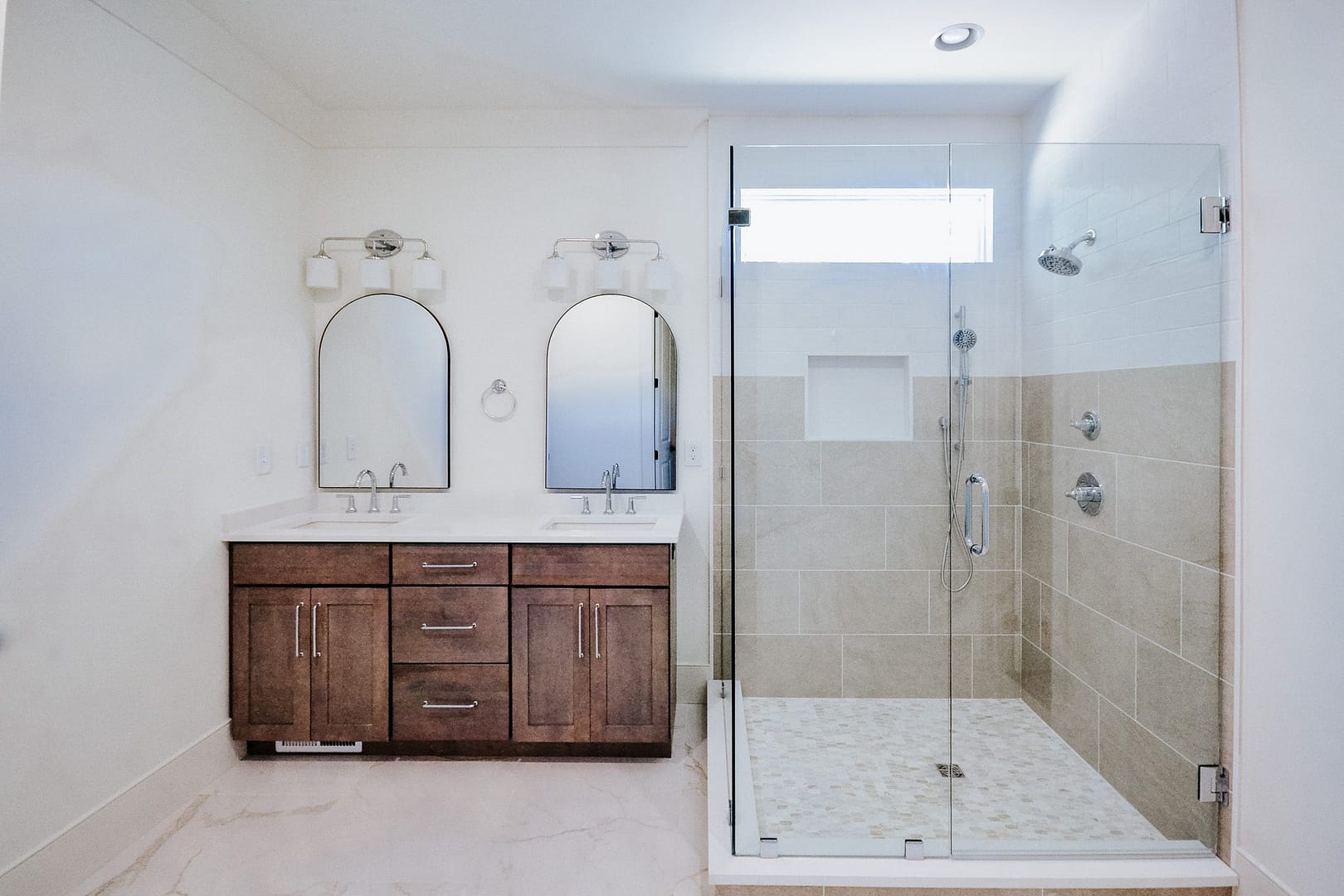 The primary bathroom is another classically beautiful space with contemporary touches that make it feel current. This room is spacious with a double vanity and a walk-in shower fit for a queen! The other bathrooms and powder room reflect similar contemporary styles that will be the perfect foundation for new owners to add their personal touches.
