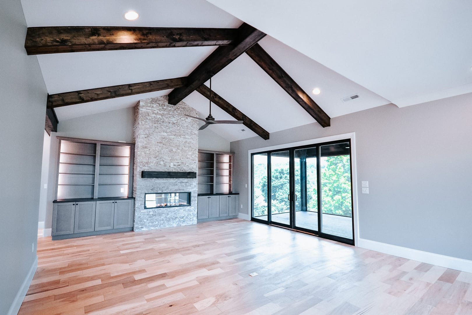 These homeowners aren’t in California anymore, but parts of their home feel like they are! West Coast meets East Tennessee in this Rarity Bay custom home. A show stopping fireplace, sleek fixtures and large windows bring in contemporary design, while lots of natural wood and stone give this home some Tennessee twang. We loved being a part of this couple’s big move from Cali to our favorite state!