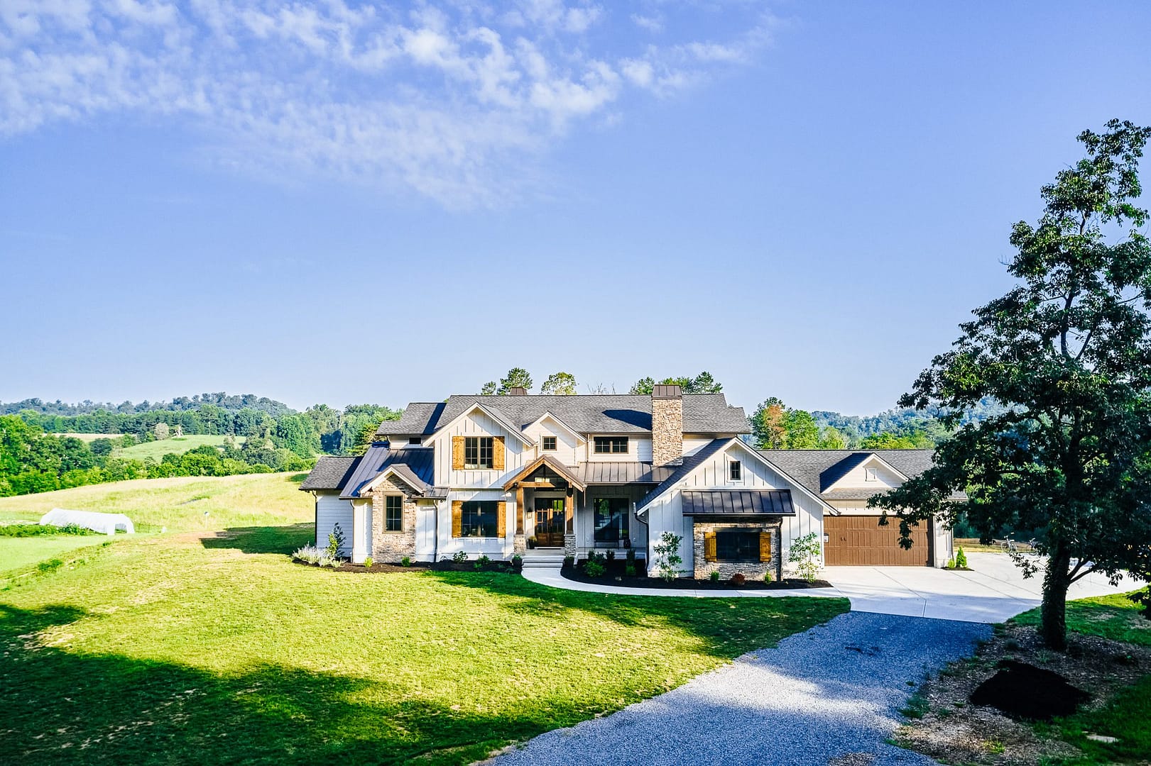 80 acres and East Tennessee views made this farmland the perfect spot for our homeowners to settle down. Their custom home has farmhouse design that fits perfectly next to the bee hives and chicken coop. This home is livable luxury at its finest. The selections are elevated but not too delicate, meaning this family can shake off their muddy boots at the door and make themselves right at home!