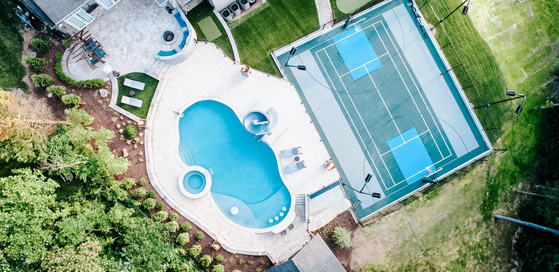 The possibilities are endless—envision relaxing with an outdoor bar, kitchen, grill station, home entertainment center, fire pit or fireplace. Tennis courts and pool projects are also on the rise. Whatever the project, quite often the vision starts with one or two wishes a homeowner wants to incorporate, such as a hanging vintage bed swing for one Sequoyah cabana. Whatever your dream may be for your outdoor space, we can build it.