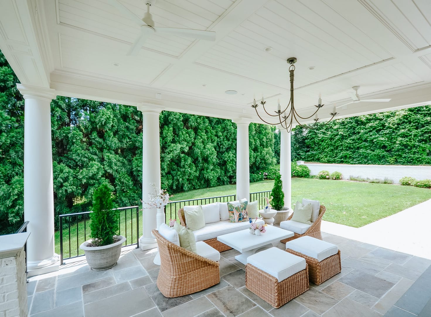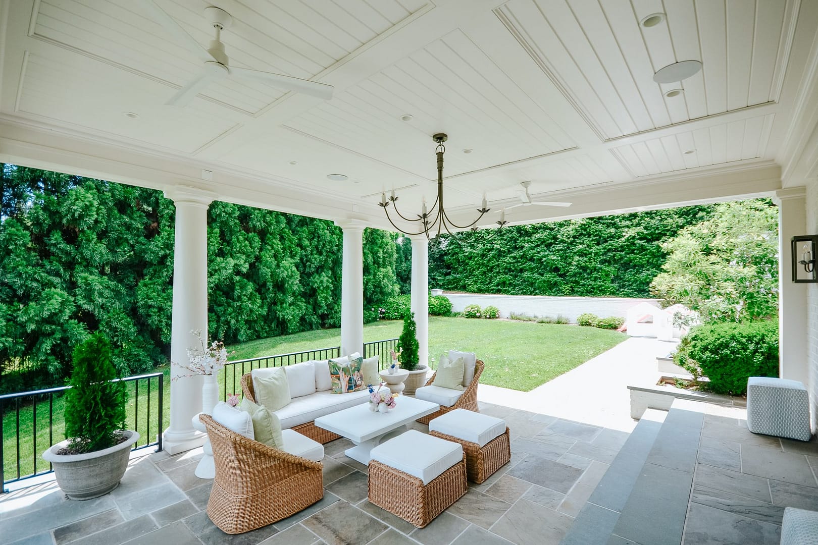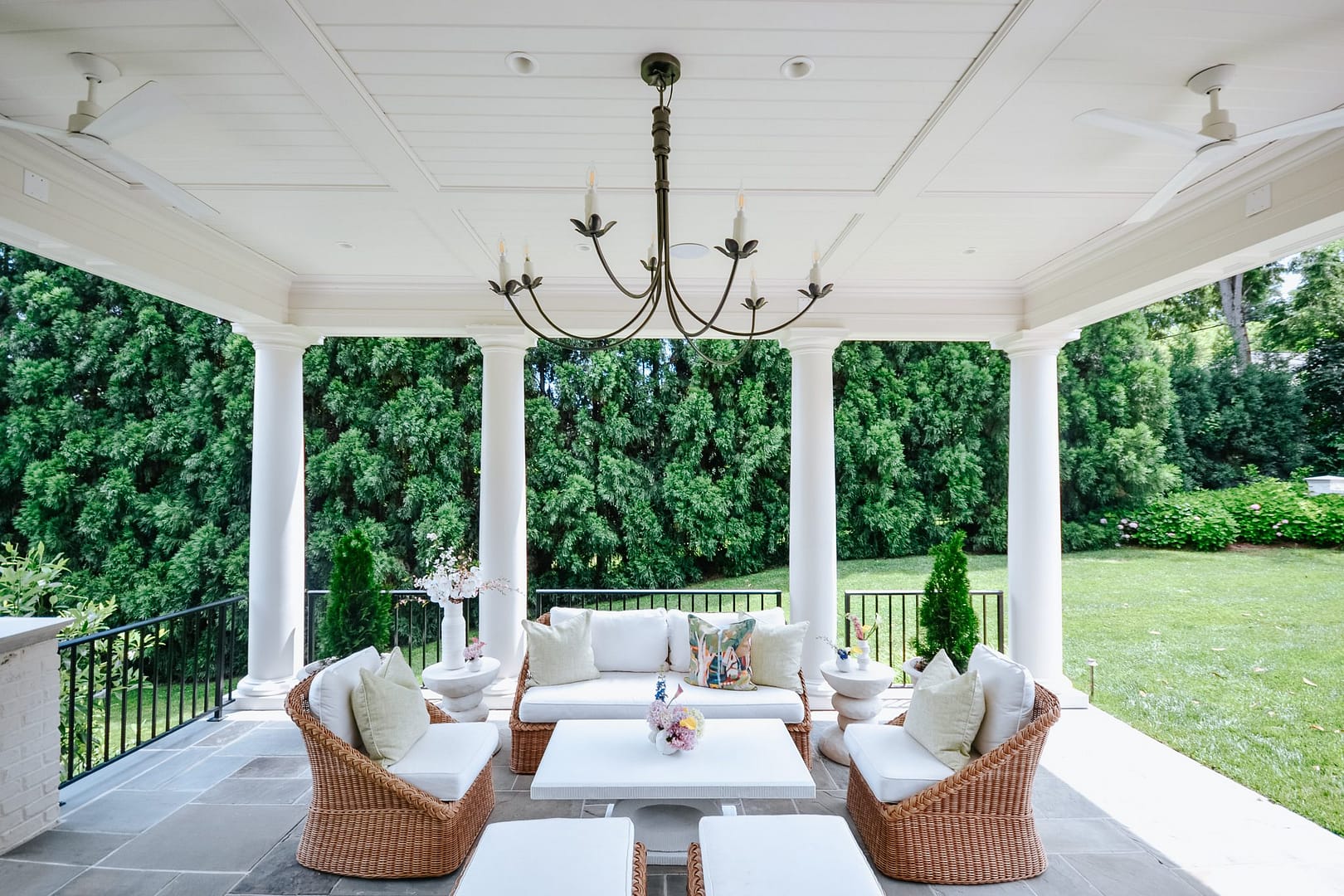 Without a covered porch, this family was not enjoying their beautiful backyard as much as they wanted to. This new addition gave them an indoor/outdoor living space to enjoy on hot summer days when they want some fresh air without the Tennessee sun blazing down on them. A classic, timeless design ties in beautifully with their Sequoyah Hills home.