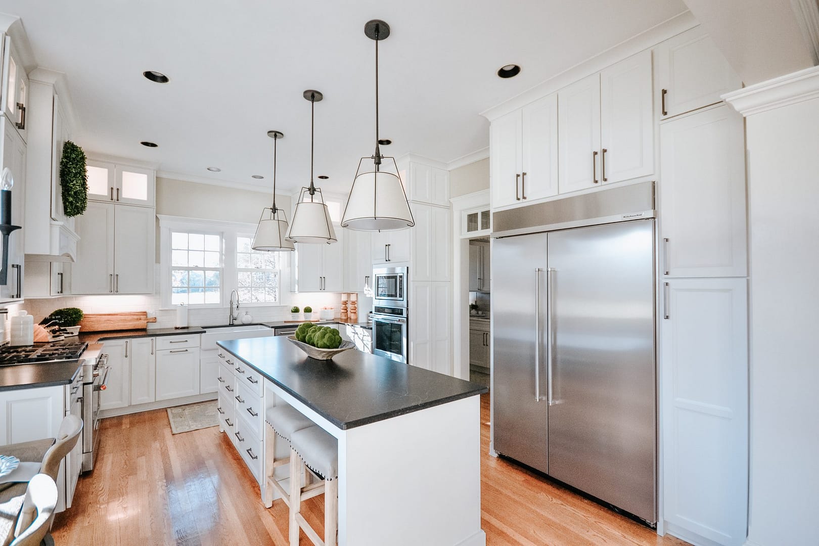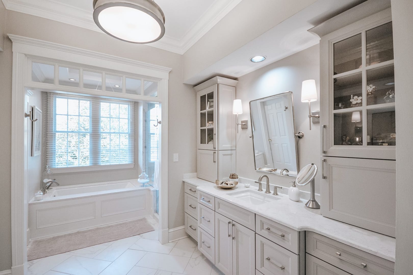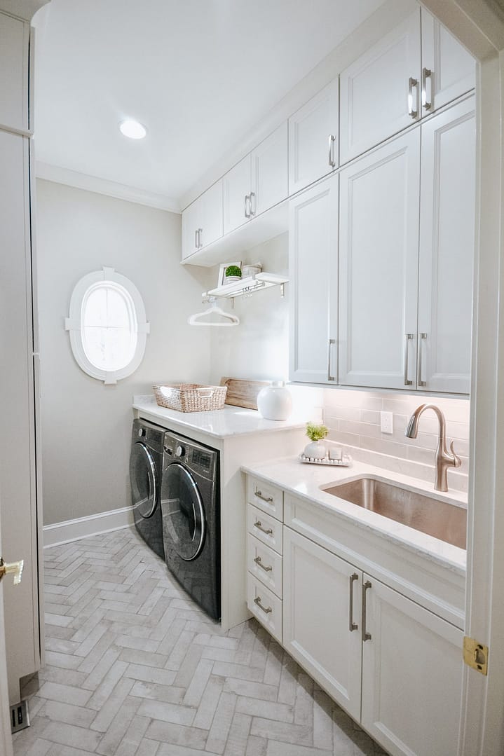 Golf course views surround this magnificent home, but the inside needed a refresh from its dated wallpaper and dark color palette. These clients wanted a bright, calming space to call home, so we upgraded their kitchen, laundry room and primary bathroom. Transitional choices and light neutrals make this home perfectly current and timeless.