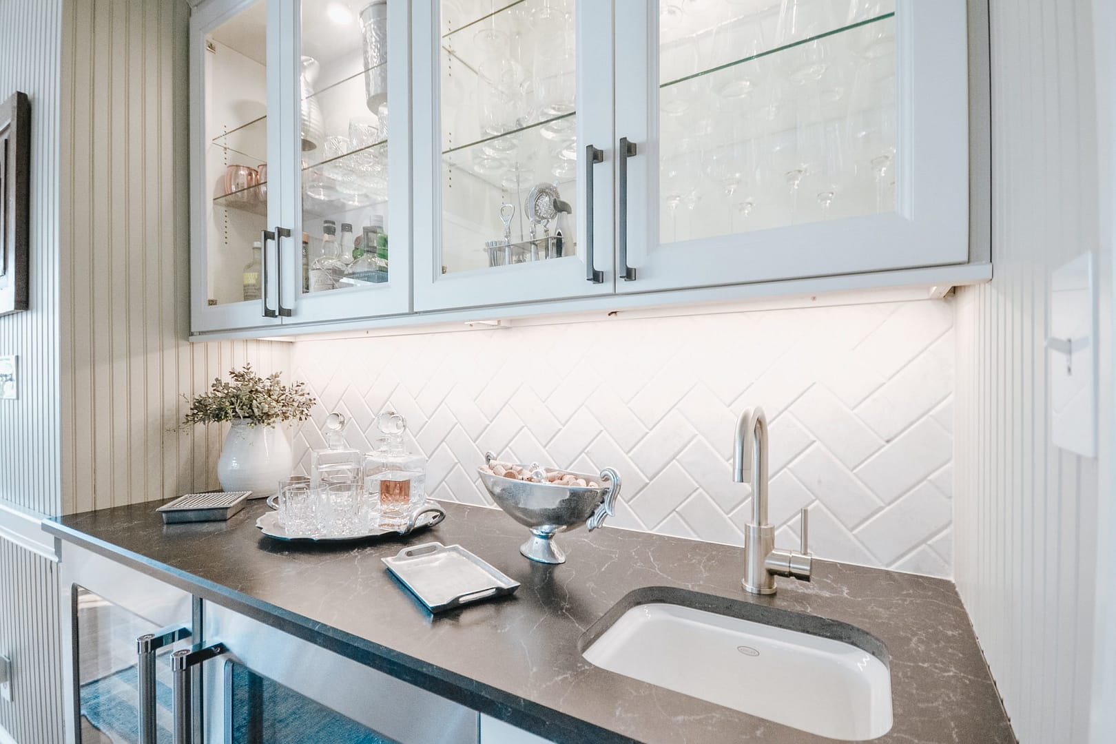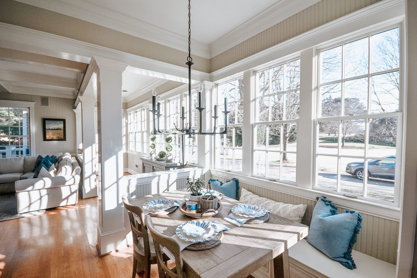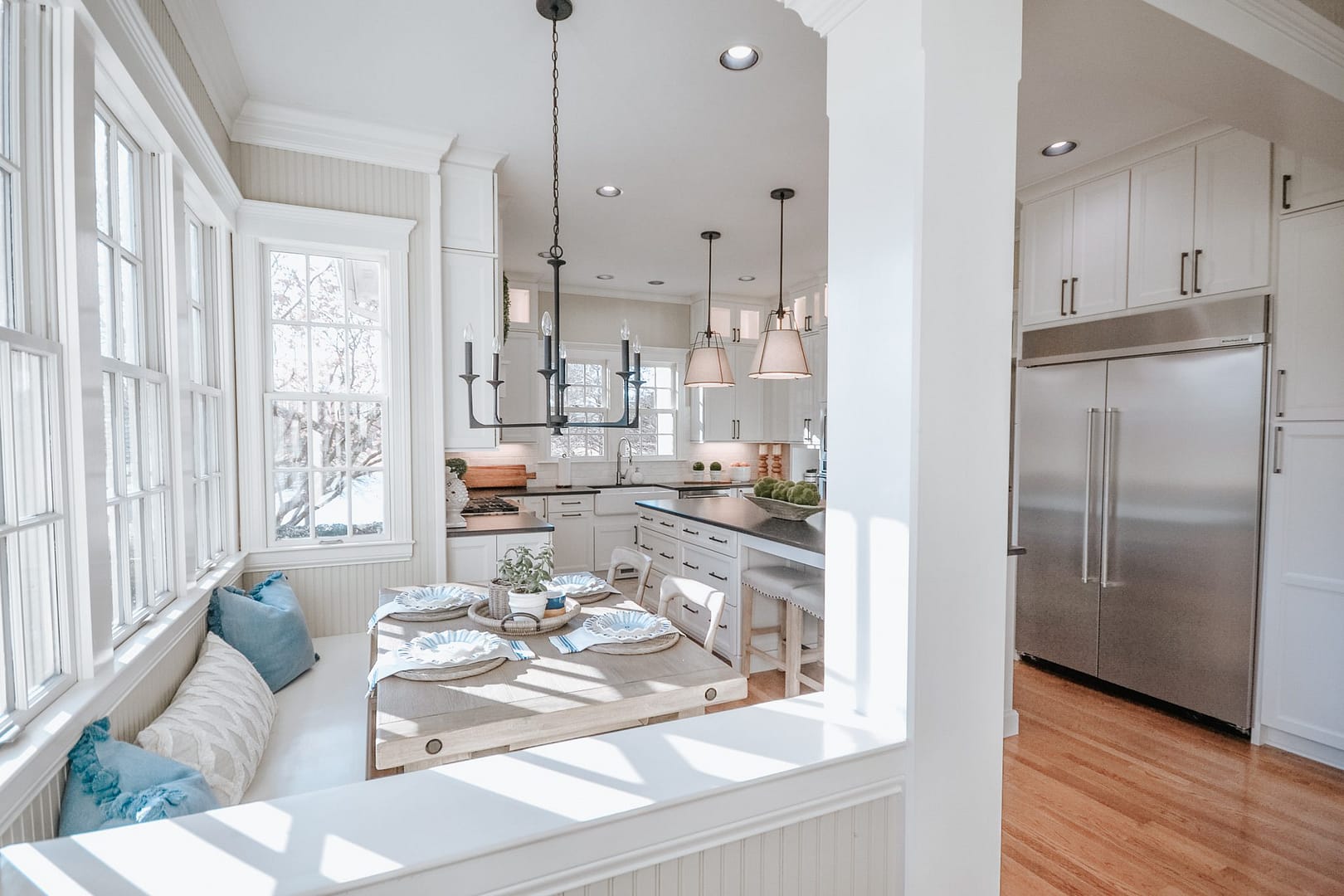 Golf course views surround this magnificent home, but the inside needed a refresh from its dated wallpaper and dark color palette. These clients wanted a bright, calming space to call home, so we upgraded their kitchen, laundry room and primary bathroom. Transitional choices and light neutrals make this home perfectly current and timeless.